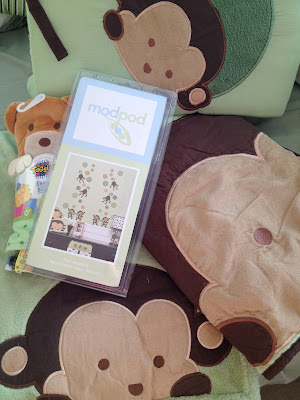 Ostimme maalia että saamme yhden makuuhuoneista siistittyä vauvan huoneeksi, ja kävimme vähän katselemassa sänkyjä ja vaunuja. Päädyimme vielä kuitenkin ostamaan vähän pienempää tavaraa kuten setin vastasyntyneen vaatteita, ja setin joka sisälsi lakanat, peiton ja pehmusteet häkkisänkyyn. Koska emme tiedä onko tulossa tyttö vai poika, päädyimme valitsemaan vaaleanvihreän setin jossa on kivoja apinoita. Täällä onkin aivan ihania erilaisia settejä koko lastenhuoneen koristeluun eri teemoin. Ostin vielä samaan sarjaan kuuluvan viltin ja apinakuvioita seinään laitettavaksi.